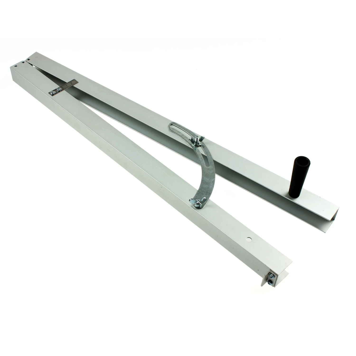 Either measure in degrees (in 1 degree from 1-15 degrees) or in inches per foot removed from the piece (0-3in in 1/4in increments). Made of anodised aluminium and steel, for long life. (Saw guard removed in picture , for clarity purposes.)