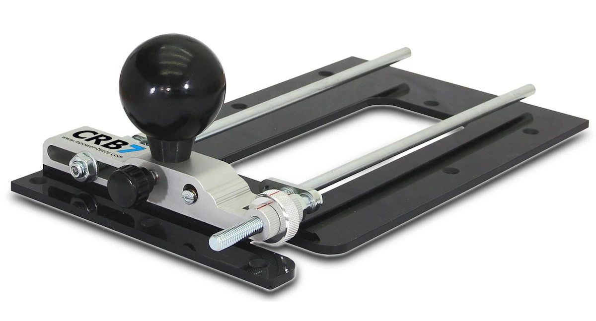 Set up with speed and ease: Fitting the CRB7 to your favorite router couldn’t be easier. The New Crank Plates and additional set of Guide Rods allow the CRB7 to be fitted to any router that has 2 through-rod drillings and rod pinch bolt.