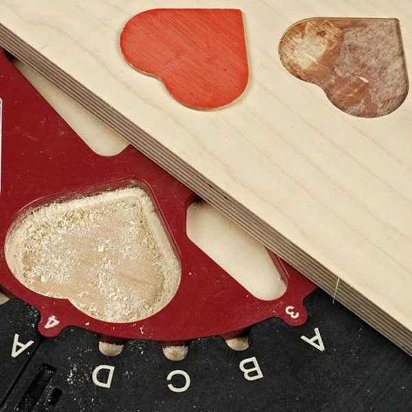The user manual contains 25 design ideas, plus instructions on the best way to create your own designs. Multiple sizes of common inlay shapes are also included. The pencil guide and pencil duplicate the cutting path of the router allowing you to practice your designs before cutting the project material.