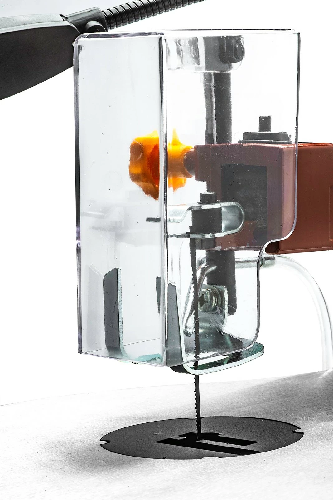 - Foot switch – Stress over safety and poorly designed scroll saws no longer! Simply depress a switch with your foot and the blade stops nearly instantly!