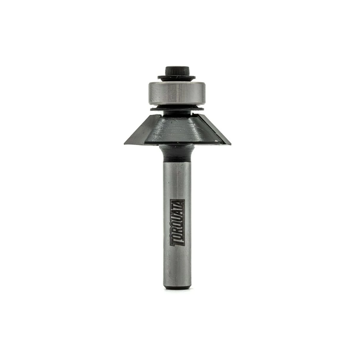 Torquata’s precision Bevel Trim bits produce a clean, finished edge on plastic laminates with little or no time-consuming filing. Their tungsten carbide cutting edges are formulated and ground especially for laminate applications. All bits have a ¼” shank and an ½” bearing.