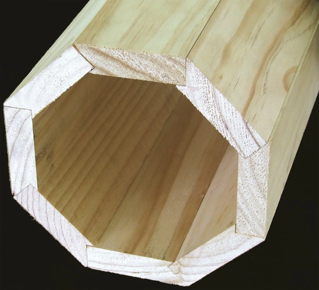 Historically used in the construction of masts and booms for wooden boats, the birdsmouth joint is straightforward to make, stronger than a traditional mitre and with nested joints, easier to glue up without shifting.